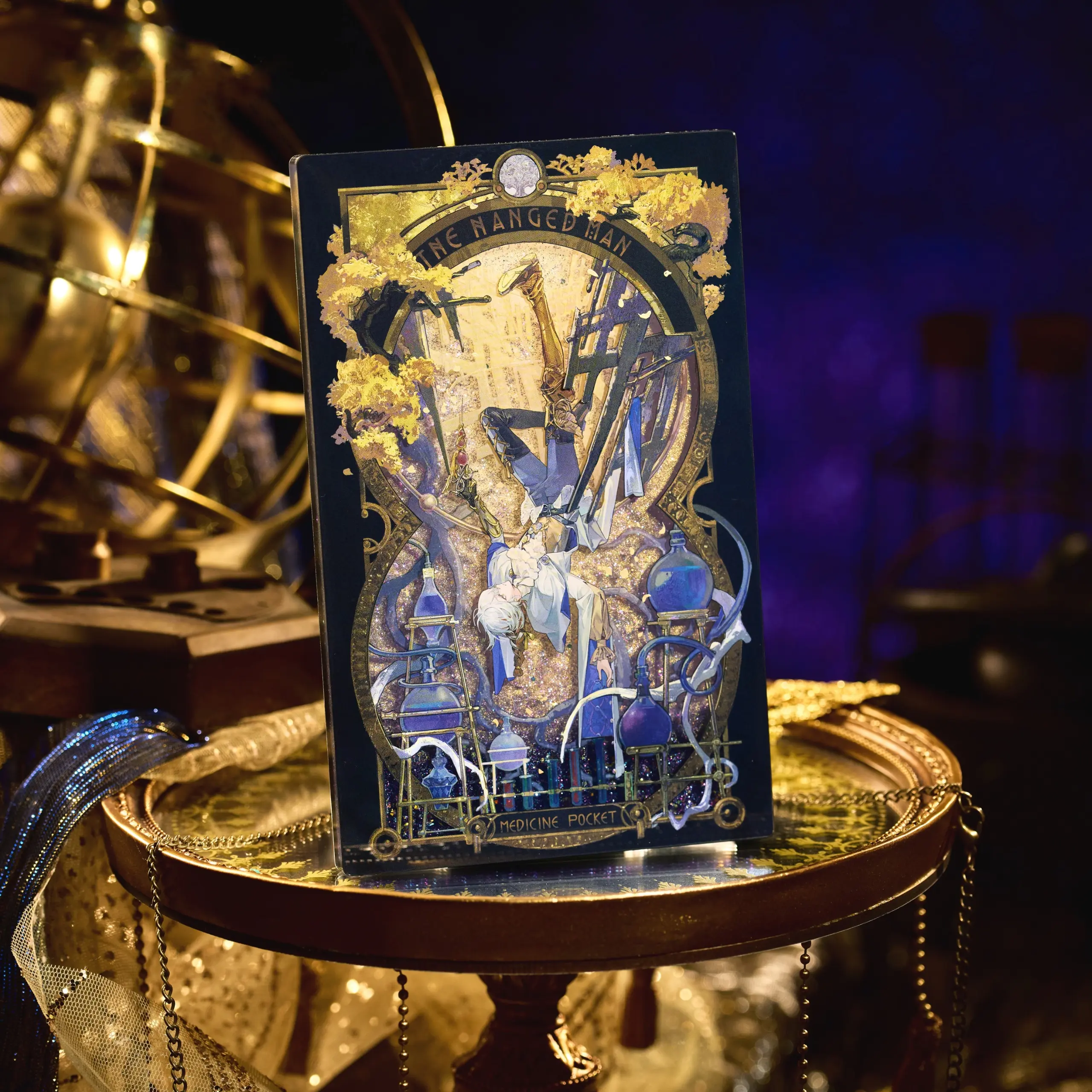 Production: Acrylic | Four-Layer Depth Effect Offset Printing with Aurora Glitter Flowing Sand | Embossed Silver Relief | Metallic Gold Foil Stamping
